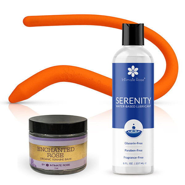 Pair with our FDA cleared Serenity Water-Based Lubricant, free of glycerin, parabens, and petrochemicals, and our Enchanted Rose Balm (external use), made with natural ingredients to soothe and moisturize sensitive skin.