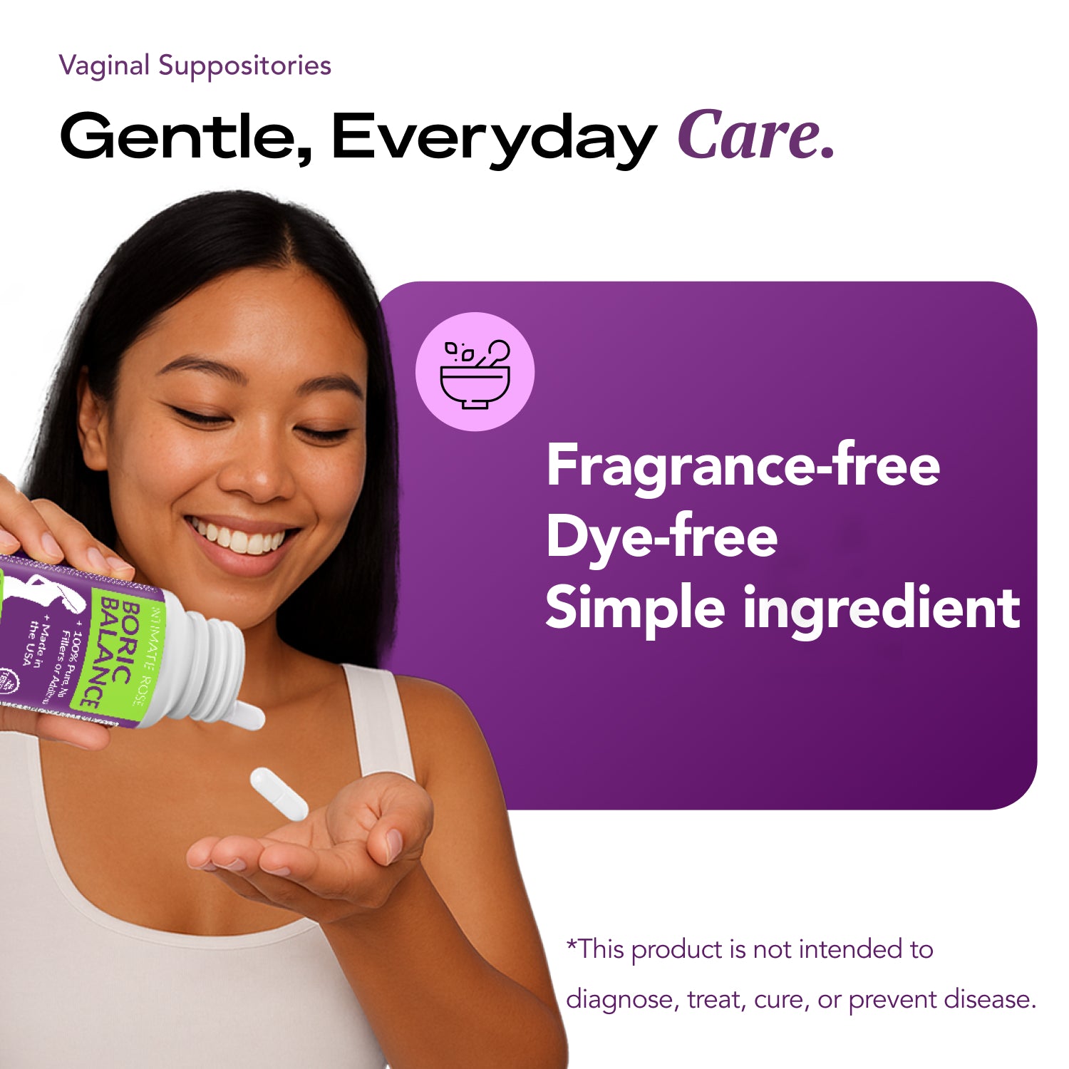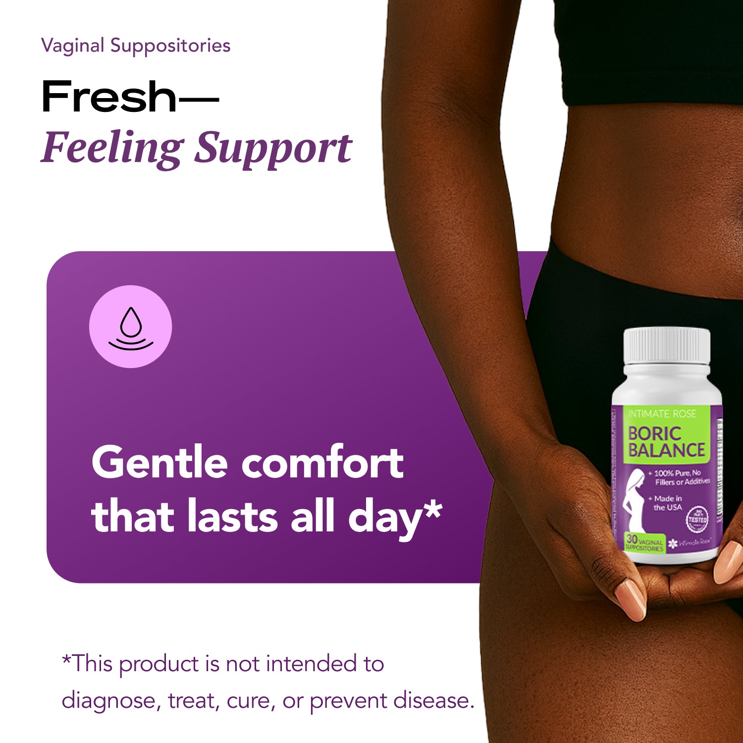 Boric Balance boric acid suppositories help support odor and irritation down there. This woman-focused, natural product delivers noticeable improvement in just 24 hours, leaving you feeling clean and confident all day