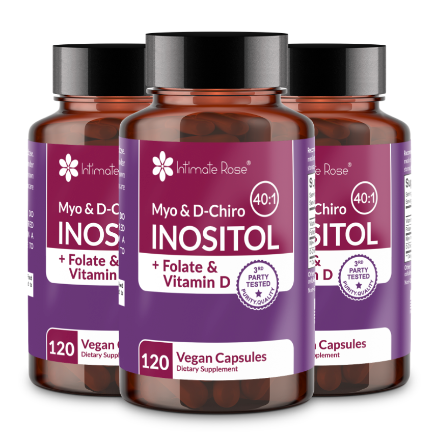 Intimate Rose Inositol Blend features four potent ingredients. Myo-Inositol and D-Chiro-Inositol are combined in a 40:1 ratio to offer maximum support for hormone imbalances and their resulting effects. When combined with folate and vitamin D, this blend provides comprehensive support for reproductive health and hormone balance.