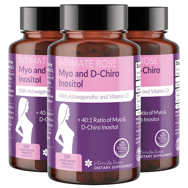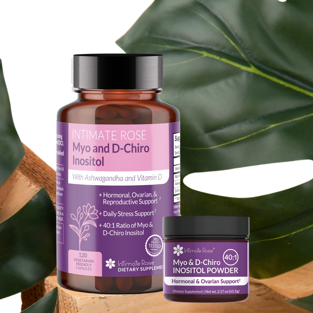 Intimate Rose Inositol Blend features four high-powered ingredients. Myo-Inositol and D-Chiro-Inositol combined in a 40:1 ratio to provide maximum support for hormone imbalances and the resulting side effects. Ashwagandha and Vitamin D are added to better support anxiety, a common side effect of imbalanced hormones.