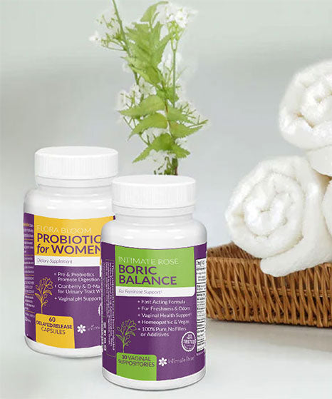 Flora Bloom is also safe for both pregnancy and breastfeeding. For best results with vaginal pH, odor, and irritation, use with Intimate Rose Boric Balance vaginal suppositories.